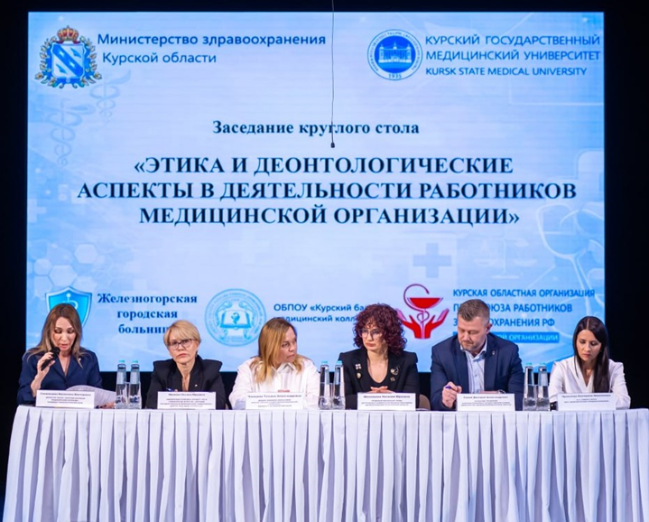 26 марта 2026 года в городе Железногорске Курской области состоялся круглый стол на тему «Этика и деонтологические аспекты в деятельности работников медицинской организации». Мероприятие организовано Железногорской городской больницей при участии Министерства здравоохранения Курской области, Курского государственного медицинского университета, Курского базового медицинского колледжа и Курской областной организации Профсоюза работников здравоохранения РФ.