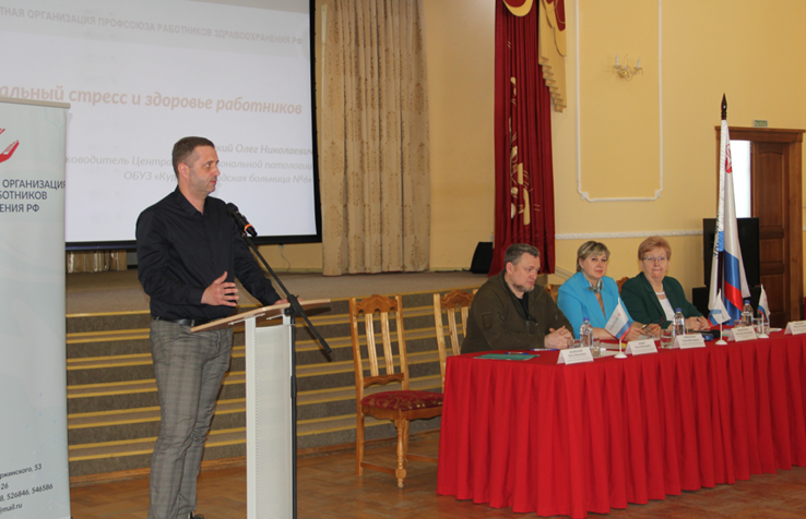 Руководитель Центра профессиональной патологии ОБУЗ «Курская городская больница №6» Олег Бачинский подробно рассказал о связи профессионального стресса и здоровья работников, отметив, что постоянная информационная перегрузка, ненормированный график и работа с пациентами создают накопительный эффект усталости, который разрушает коллектив изнутри, если не принимать своевременных мер.