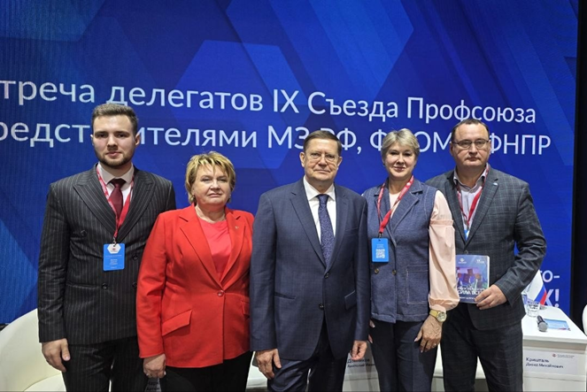 Во второй половине дня прошла встреча делегатов IX Съезда Профсоюза, на которой обсудили взаимодействие с общественными объединениями и организациями.